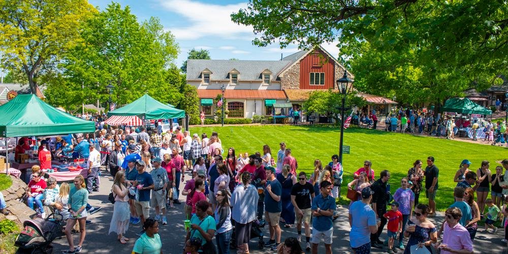 Peddler’s Village is one of those places that shouldn’t work as well as it does — 42 acres of colonial-inspired winding brick paths, perfectly tended flower gardens, boutique shops, and a lovely inn that looks lifted straight from a Bucks County daydream. And yet it works, magnificently. The annual Strawberry Festival has been the unofficial launch of summer here since 1978, and the community shows up for it with genuine enthusiasm. Seven stages of live entertainment, fresh-baked pies, strawberry desserts in every conceivable form, axe throwing , face painting, kids’ crafts, and a pie-eating contest a pure delight to watchand fascination. Admission and parking are completely free — which, for an event this polished in Bucks County,