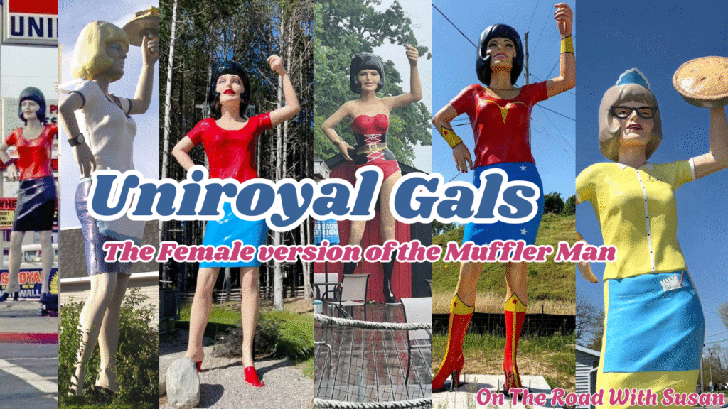 When people think of roadside giants, the first image that often comes to mind is the classic “Muffler Man” — those towering fiberglass figures that once advertised muffler shops, gas stations, and burger joints. But did you know there’s also a female counterpart? Known as the Uniroyal Gals, these statues are rare roadside attractions, Only about 10 orginial left, that add a unique twist to the history of America’s fiberglass giants.